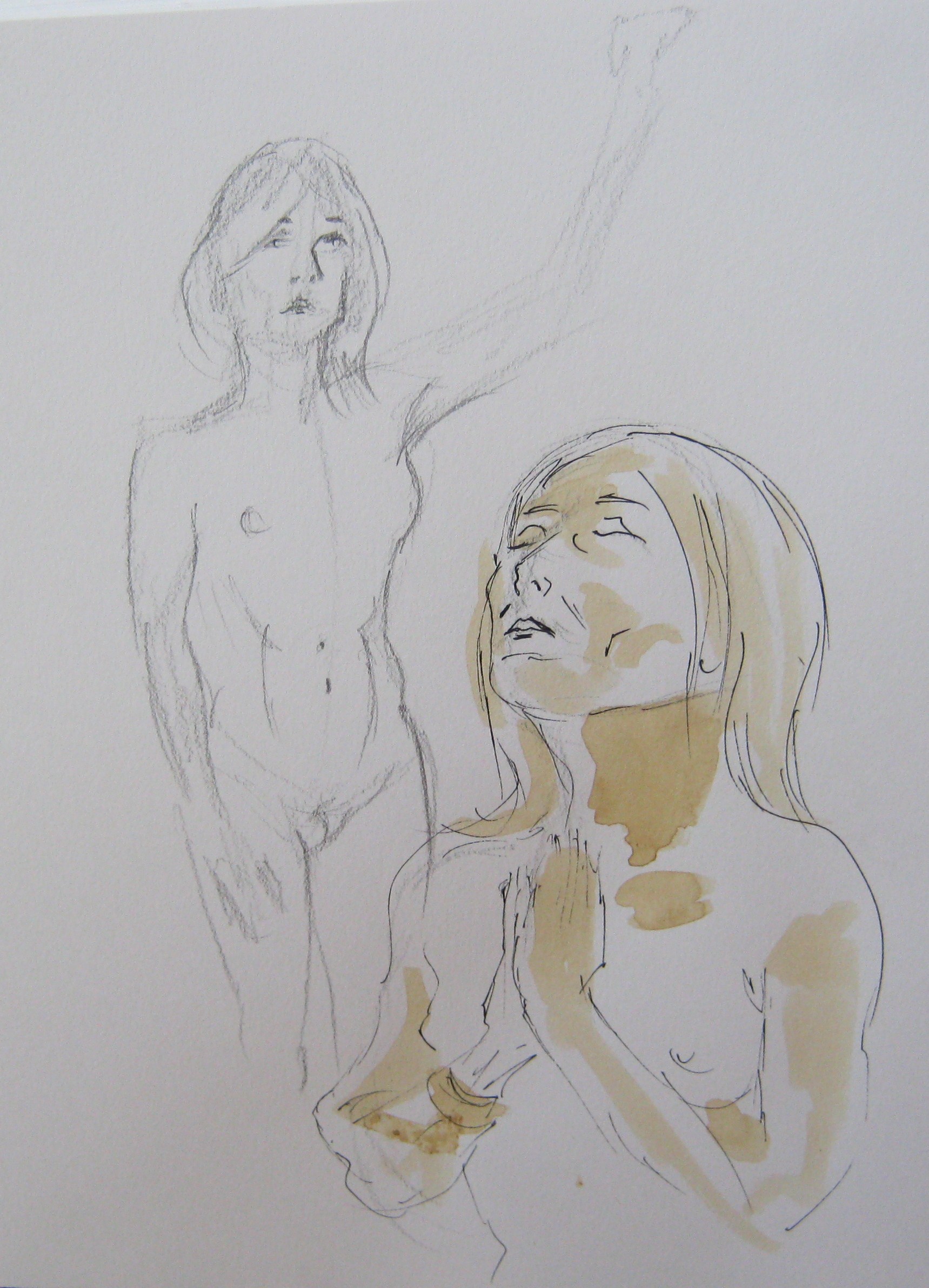 Jillian Page's Eve, with apple, in a 20-minute standing pose at Figure Drawing workshop in Montreal on Oct. 20, 2013. (Sketch by Colette Coughlin)